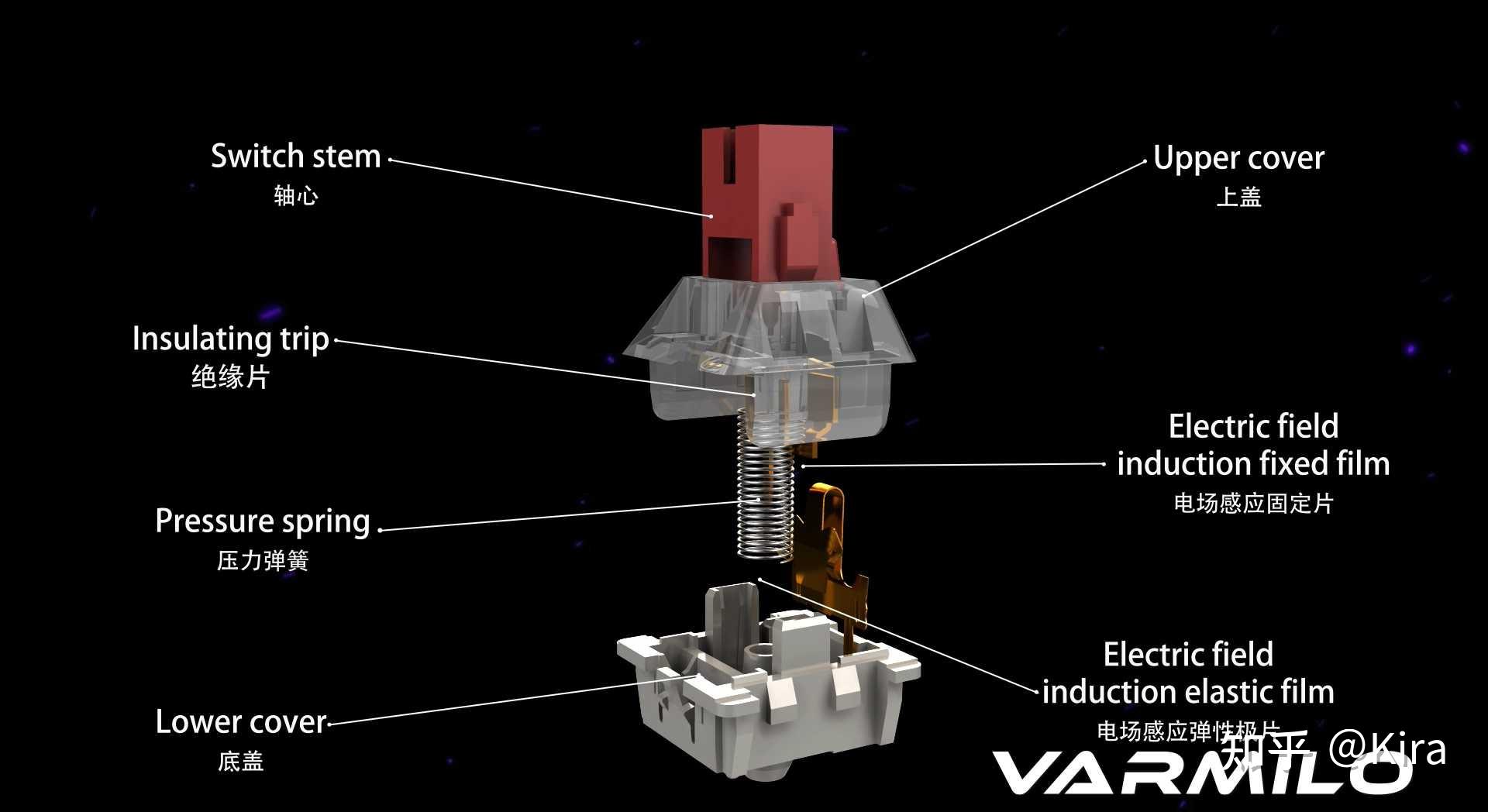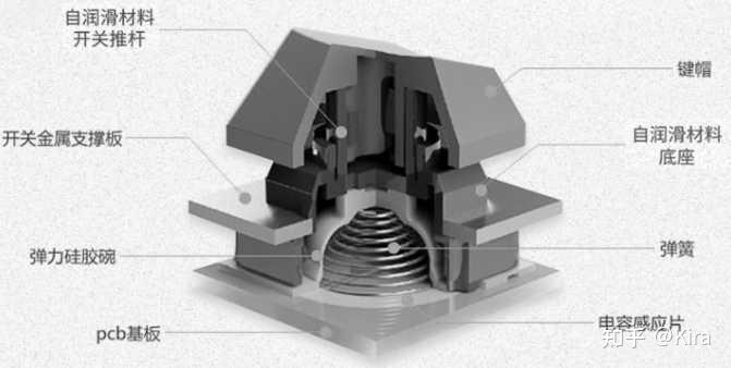 静电容键盘的每个按键都是独立的电容开关。当按键按下时,电容开关的电容量将变化从而产生信号。这意味着,静电容键盘的按键手感与按键产生信号的方式是毫无关联的,即键盘按键的手感将完全由厂家调教来决定。