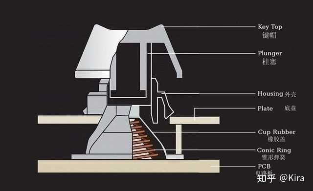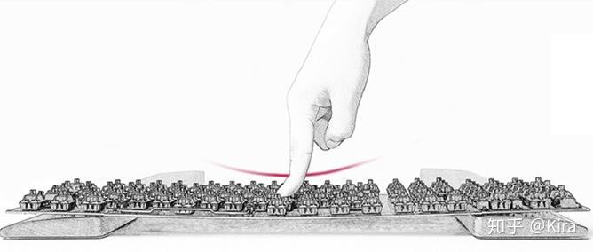 • 段落感:段落轴按压时存在二段的弹力反馈,类似于圆珠笔的按钮;而相对的,非无段轴即线性轴,按压时直上直下,一触到底;