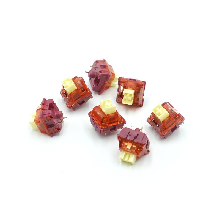 现在阿米洛的静电容轴有四种:雏菊黄、樱花粉、玫瑰红、草木绿,雏菊黄、樱花粉、玫瑰红属于线性轴,三个轴体的触发压力一次增大:雏菊黄 -> 樱花粉 ->  玫瑰红。