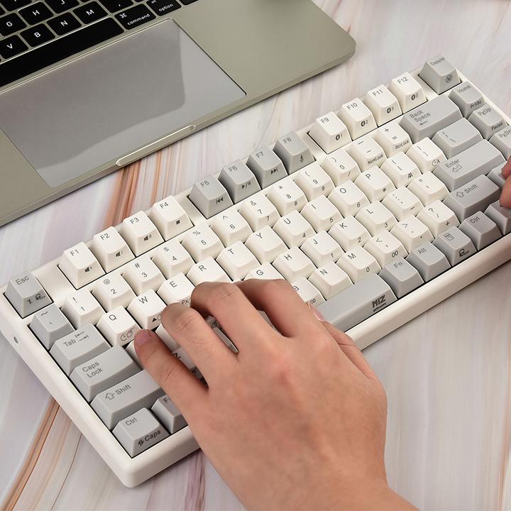 Niz属于可买到的静电容键盘里最便宜的静电容,不过因为键盘的配列比较多,有的配列的shift和空格的长度,比较正常的是 108\87\82\68。我用的是82和68,84就是典型的短空格,双FN,也不是说找不到对应的可换键帽,就是比较费事。