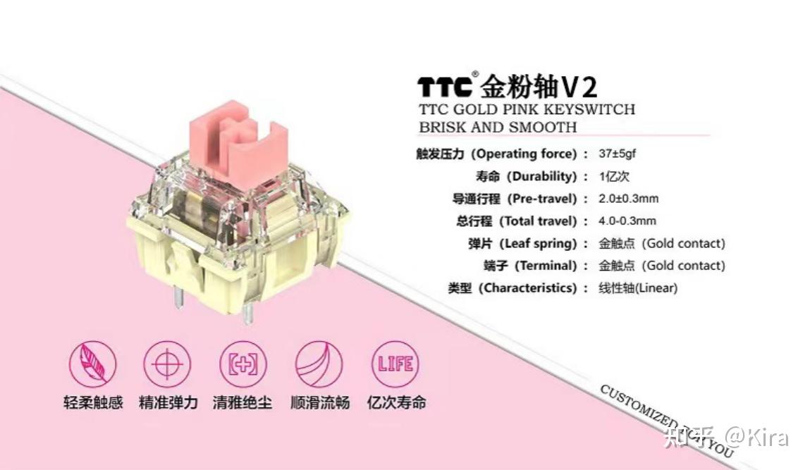 像TTC金粉轴,他的触发压力就是37gf,新出的TTC爱心轴,他的触发压力是38gf