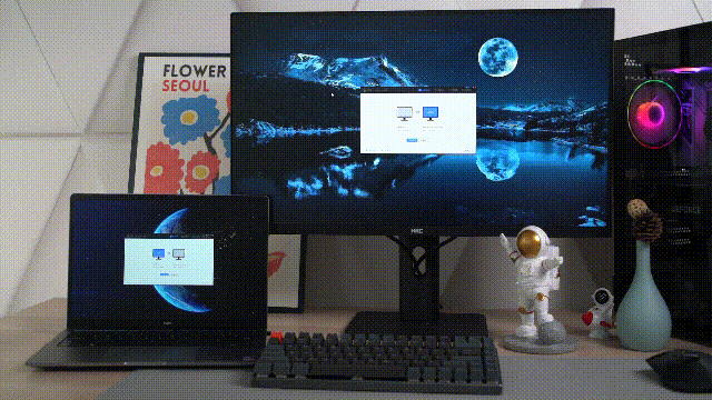 进入详细体验前,我们得进行一些准备。为了更加直观展现跨屏操作,我选择了一台笔记本+一台台式电脑,这也是很多用户常遇到的场景之一。