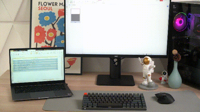 这里我们也实际测试了一下,在台式电脑和笔记本之间互传文字数据、视频,以及图片等等,测试过程中并没有出现断连情况,传输速度较快。不得不说,这个跨屏剪切板功能真的非常有用,满足日常小文件或者文字数据的传输,U盘都省下了。