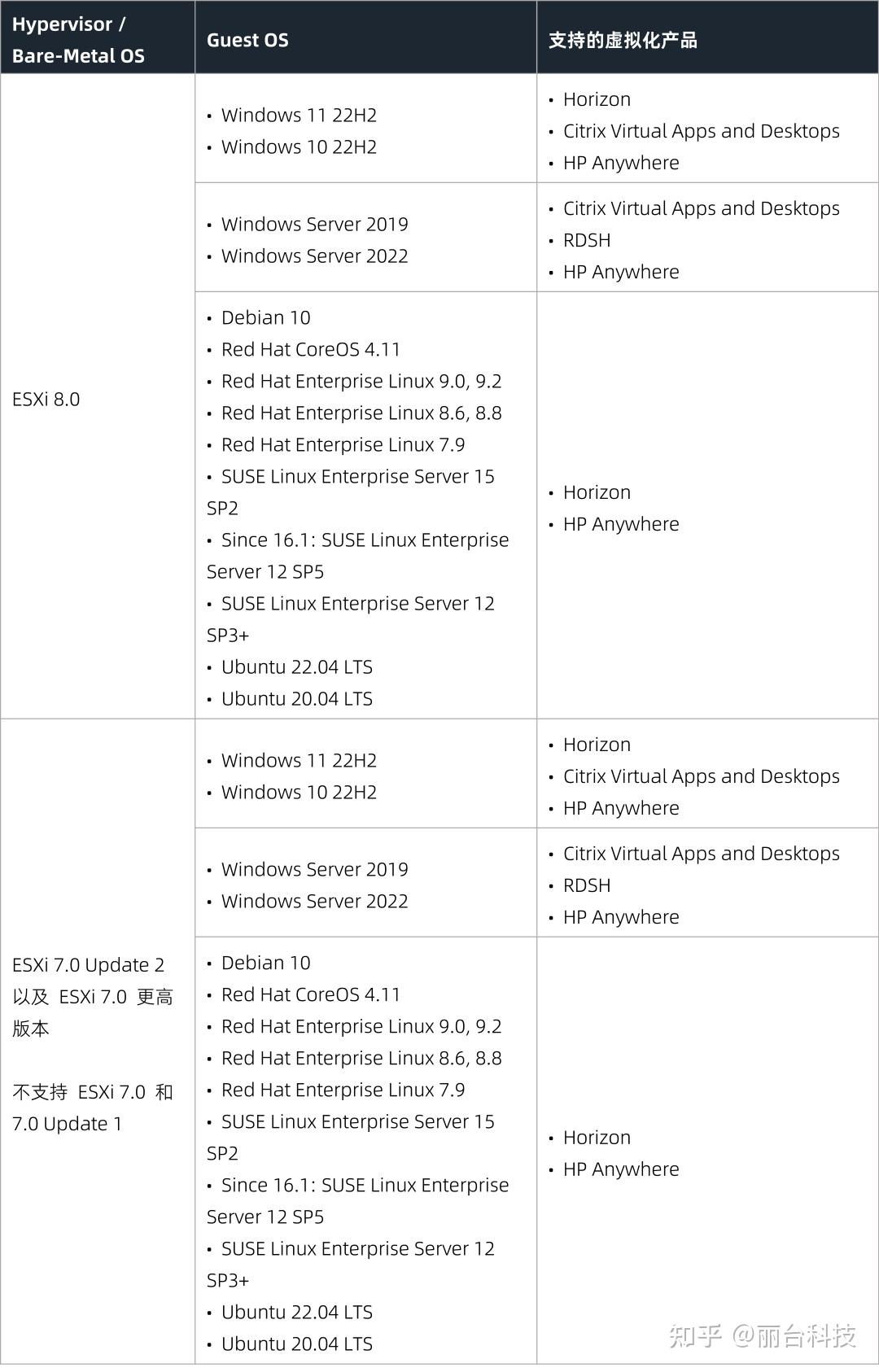 vGPU 16.2 版本为例,其支持的系统和虚拟化产品如下,用户可以根据现有的虚拟化平台进行选择。