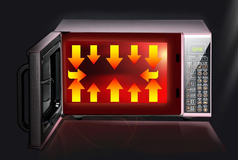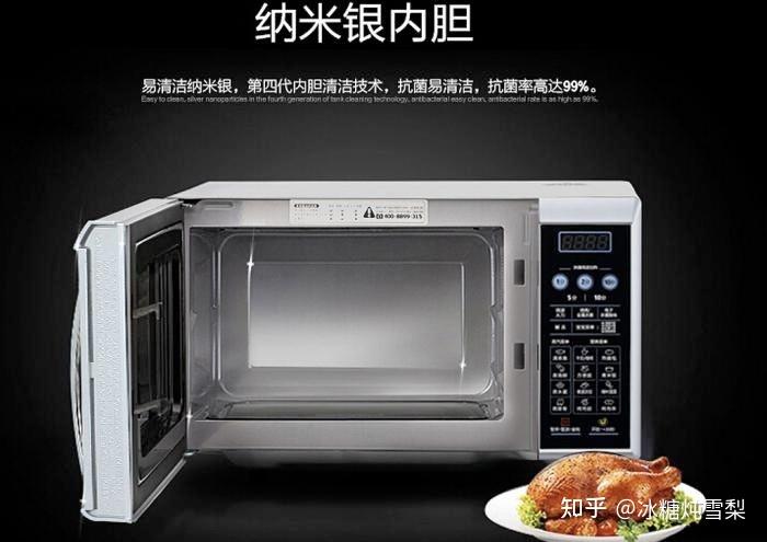 图源网络,纳米银内胆④ 5T无毒抗菌内胆:与纳米银内胆相似,但是是纳米银内胆的升级版本。在纳米银内胆的杀菌功能上,还有强度、硬度大等优点。但是本身使用寿命不长,长时间使用,它的表层膜会脱落。 选购建议:无论是哪种材质的内胆,重点是选择表面更加光滑的内胆,一方面反射的速度会得到提高,另一方面也更加容易清洗。综合考虑,优选不锈钢内胆,性价比较高。 3、选择加热方式 微波炉的加热方式分为机械型、光波炉型、变频型、蒸汽型、智能型这五大类,这五种加热方式各有其优缺点。 ① 机械型:机械型加热方式是早期的微波炉所采用的,就是利用磁控管对食物进行加热;这类加热方式操作简单,且技术成熟,普通价格不高,适用于家里有老人的情况。 ② 光波炉型:光波炉型就是利用卤素管发射光波对食物进行加热,它在高端的微波炉中,主要是做辅助操作,主要对烧烤类食物进行处理。