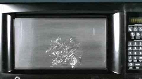 以下物品禁止放入微波炉加热:- 金属,包括铝箔都不行。