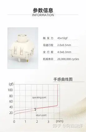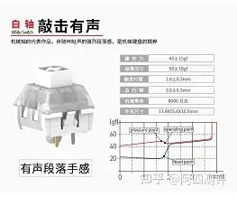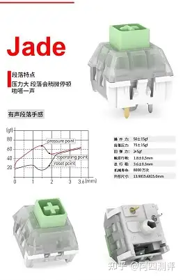 月白轴: 月白轴则争议比较大,喜欢的非常喜欢,不喜欢的完全不能接受,由于触底的独特软胶垫,使触底手感类似静音轴,而3回弹触顶依旧是段落轴手感,是一款比较特殊的轻压力、强段落轴体。