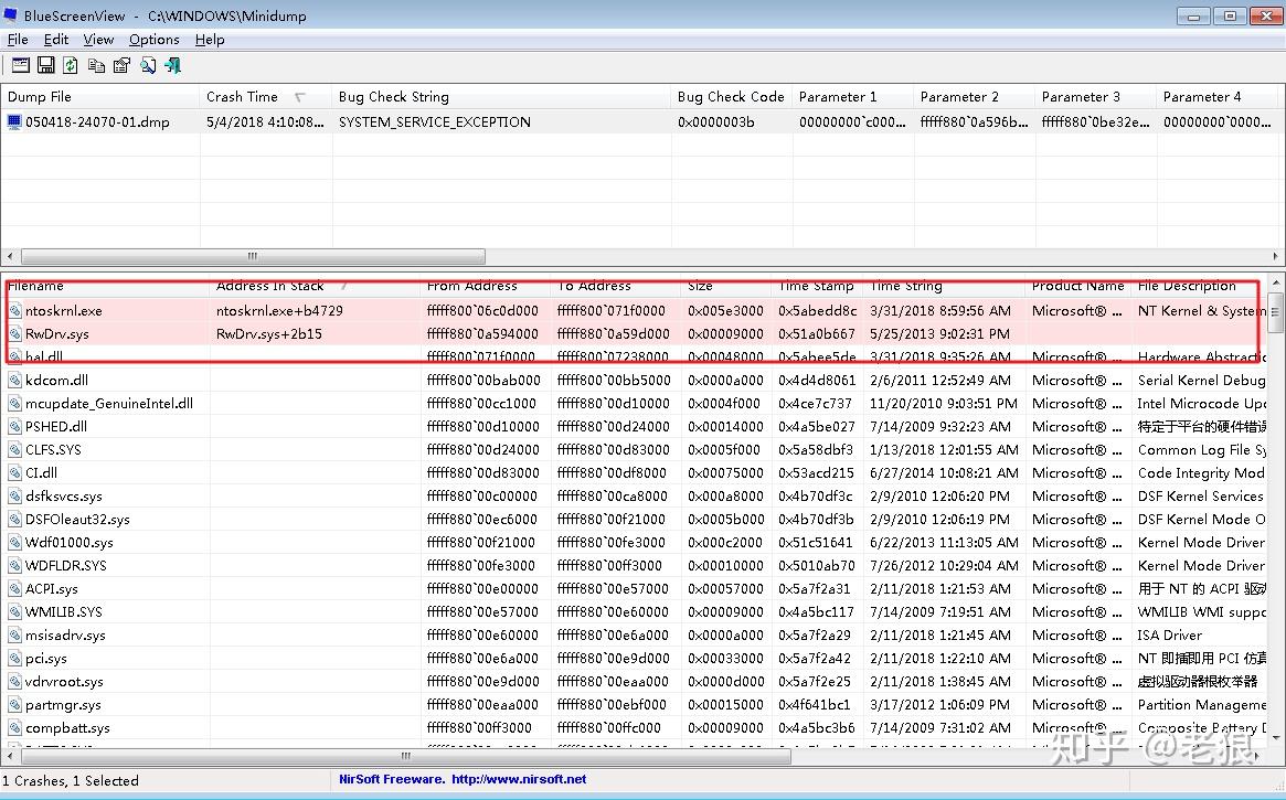 这些设置好以后,以后每次蓝屏,都会有minidump文件存储下来。 有了minidump文件之后,我们可以用一个离线小工具来简单分析这个文件:BlueScrennView。它是一个绿色免费工具: Blue screen of death (STOP error) information in dump files.