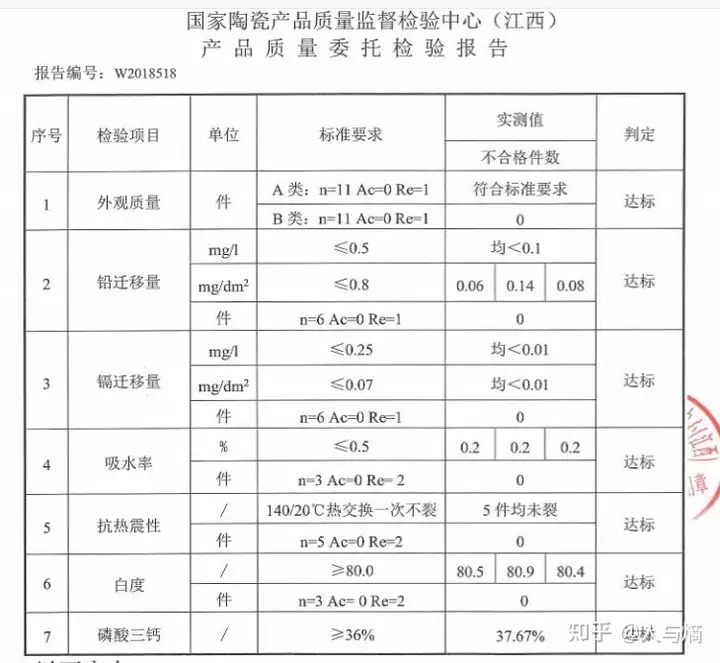 近来,在知乎上看到很多购买瓷器的知友有此问题,所以干脆写了这样一篇完整的文章,教你如何看质量检验报告?如何判断陶瓷、骨瓷餐具是否安全健康。当然,我建议一律不给你提供质检报告的商家产品都不要购买。 首先我来简单科普一下釉上彩、釉中彩、釉下彩,它们的区别很简单。 釉中彩和釉下彩都是在绘画的基础上会再上一层釉,然后1100度高温烧制。 而釉上彩是先上釉,然后在釉上做绘画,一般是800度高温烧制。这样绘画颜料会在表层。安全的角度上来讲,釉中彩和有釉下彩更好。釉上彩安全性相对来说要差一些。 其次我们说下釉上彩的安全性。因为颜料含有铅、镉重金属。判断其是否安全的标准,对于大众来说,看品牌就行了。国宴品牌一般都没有问题的。不熟悉的品牌就不一定了。 而更专业的判断方法是看铅、镉溶出率。只要铅溶出率小于允许极限为0.8mg/L,镉溶出率小于的允许极限为0.07mg/L。就是符合国家标准和国际标准的。 关于这个问题可以去看下面关于国际标准和国家标准的详细叙述。 制定标准:陶瓷餐具是我们生活中使用的主要食品接触器具,但瓷器在烧制的过程中,因为需要保证餐具不渗水、瓷器表面光滑和美观,就得为其上釉和着色,而上釉和着色用的颜料含有金属铅和镉。 如果人使用的餐具铅、镉溶出率超标,就会使人体重金属中毒,轻度表现为神经衰弱(如失眠、乏力、头昏),消化系统紊乱(食欲不振、恶心),长期铅镉轻度中毒会导致贫血症状,重度的铅镉金属中毒会危及人的生命安全。 所以这就需要一套标准规定餐具的铅、镉溶出率不得超过的多少。 GB标准和ISO标准:我国制定的标准简称GB标准,国际通用标准简称ISO标准。 从上世纪90年代开始年开始,我国已经修改了多次关于与食物接触的陶瓷制品铅、镉溶出量允许极限。 下图是1990年我国制定的铅镉限量指标GB12651-1990:  从这个表中我们可以看到,当时对碗盘碟的铅、镉溶出率安全指标分别为7mg/L和0.5mg/L,随着我国经济的发展和人民生活水平的提高,这个安全指标也在提高。 下图是2002年我国制定的铅镉限量指标GB12651-2002:  扁平制品的铅溶出率标准改为5mg/L,镉的仍为0.5mg/L。 现在我们用的是2016年制定的标准:  从表中,我们看到,对扁平类制品的铅、镉溶出率安全标准再次进行调整。 扁平类制品的铅允许极限为0.8mg/L,镉的允许极限为0.07mg/L。其他物品的允许极限相差不大,对烹饪用器皿的要求更高一些。 表中下图为ISO国际标准,我国的GB标准和国际ISO标准对铅、镉溶出率的考量基本一致。 行业现状:目前,国内陶瓷餐饮器具仍然极不规范,市场上的产品良莠不齐,主要以低档次产品为主。一些小作坊、个体、私营企业为降低成本,制作流程上减少烤花时间,和使用低于行业认同的温度标准,可以说为求利润,不择手段,严重影响了整个国内瓷器行业产品平均质量水平。 2012年,国家质检总局对日用陶瓷餐具产品的质量进行了大范围的监督抽查。此次共抽查了北京、河北、福建、山西、江西、湖南、山东、广东、广西、上海、安徽、江苏,2个省自治区和直辖市的43家企业,涉及44种产品,合格仅33种,所抽查的产品合格率仅为75%。 同时,也不要盲目地就相信进口的陶瓷餐具不含铅镉,2015年香港海关检查了来自英国、葡萄牙、日本、意大利等国的600款瓷器餐具产品,包括大小不同的碟、碗、盘、杯和汤匙,检查结果显示226款不符合国际标准规定,铅镉溶出率超标,不合格率占抽查样本87%。 我们改如何做?1,不要去买没有铭牌标识和安全检验报告的产品实体店购买瓷器餐具。 2,网上购买瓷器餐具,尽量到旗舰店或者京东自营店购买,并必须要求商家提供产品合格检验报告。 3,若预算没有问题尽量考虑国内顶级国宴品牌,他们的产品经过严格把关,也是我们国家餐具安全标准的引领者和提升者。他们的产品都有质检报告,你可以直接找客服寻要。  下面这几张图是我找玛戈隆特和华光国瓷、隆达骨瓷客服寻要的质检报告,我们可以看出,他们的产品实测值是远低于GB-2016的,使用更为的安全,这些品牌店里的产品也有各种价位的,满足不同预算的需求。    如果需要推荐安全瓷器餐具,请参考全网最全的瓷器推荐系列文章: