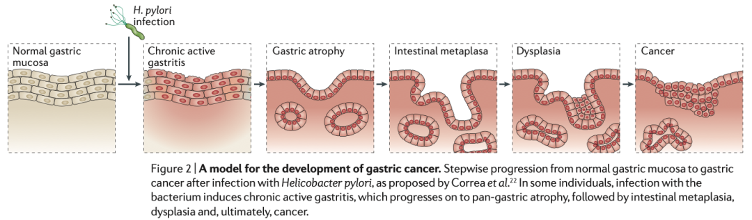 (图片来源于文献【3】,健康胃黏膜在感染Hp后的疾病发展进度)