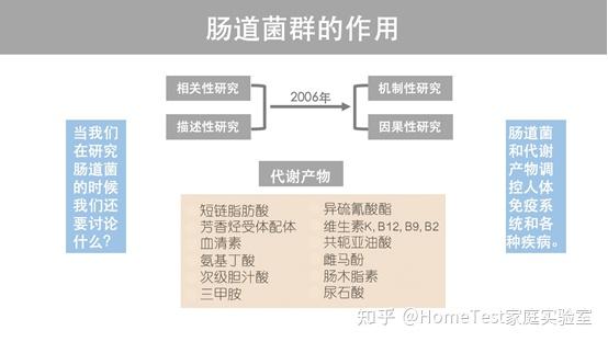以往的肠道菌研究都是描述性的研究和相关性的研究,描述性的研究就是研究常到群里边都有哪些。细菌的组成,而相关性的研究是发现肠道菌和某种疾病的关联性,这样的关联性研究无法确定到底是肠道菌引起的疾病还是疾病导致的,肠道均出现问题,这样的情况持续到2006年。科学家们首次发现,通过粪菌移植,可以将数组的肥胖问题完全转移到新的速度身上,这才重新打开了肠道菌和疾病因果关系的大门,随着研究结果越来越详实,肠道菌的研究已经从描述性和关联性向因果性和机制性进行转变。