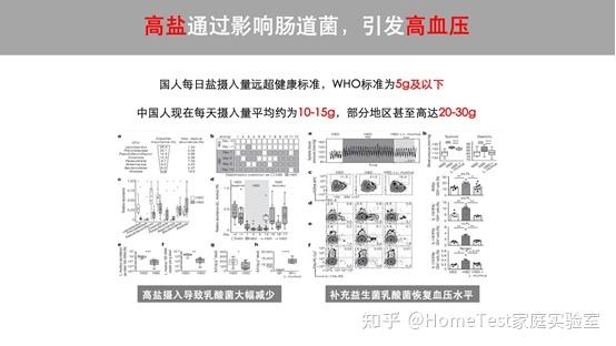 大家都知道,盐吃多了可能会引起高血压,按照世界卫生组织每日每人五克的盐标准,咱们国人的盐摄入量其实远远超标了,据报道,在我国,国内口中的山东重盐,重辣的,四川等地,盐摄入都在每人15克每日左右。甚至有的能达到每天25克,但为什么高盐会导致高血压呢,很多人说不清楚。前不久,德国科学家的研究结果可能有助于揭开这个疑惑,他们的研究结果表明,连续一周的高盐摄入就会明显显著升高血压的水平,同时改变肠道菌群的结构,尤其是一些乳酸菌的丰度,断崖式的下跌,数量甚至还不到对照组的5%。如果重新补充乳酸菌,血压就会重新下降,炎症水平也会下降。可见,肠道菌在高血压的问题中扮演非常重要的角色。